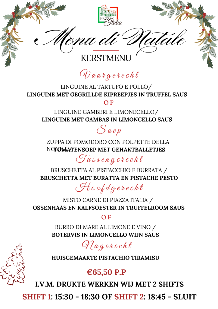 Wilt u reserveren voor de kerst? U kunt ons telefonisch bereiken via 0402852525 of via de site reserveren.
